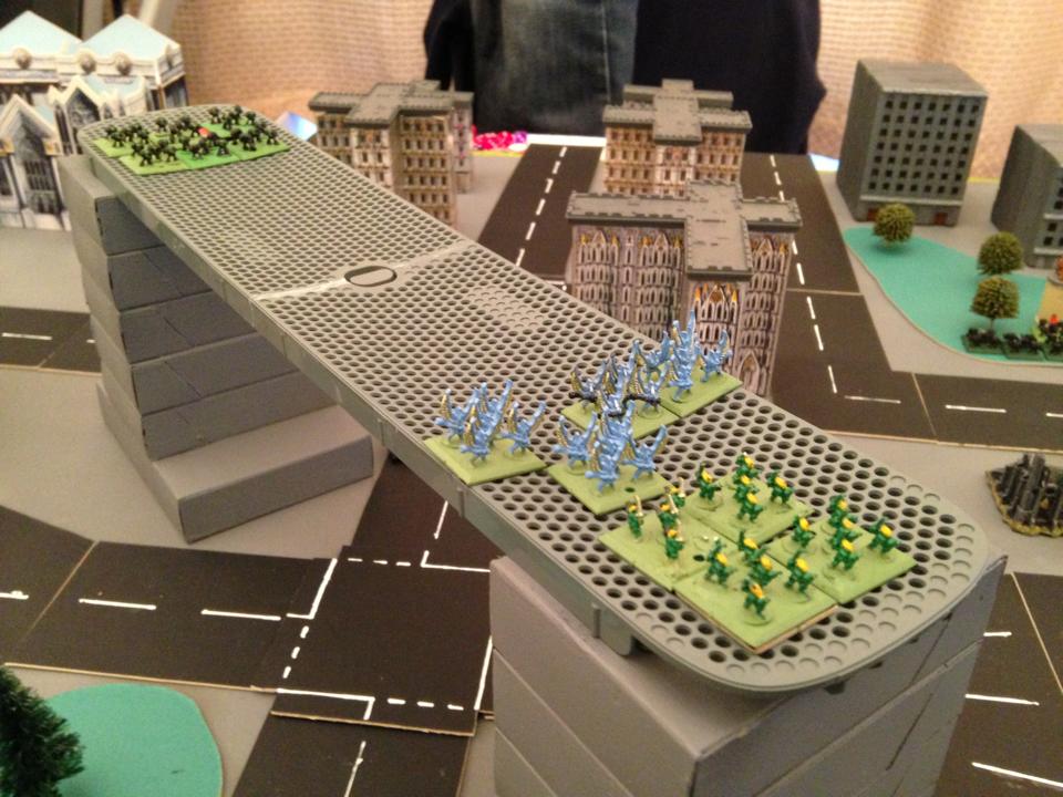 The battle was fought on city terrain (G12 on Campaign Map). The Marine army was on Advance orders and the Eldar on Charge. The Marine player would automatically have initiative on turn 1 of the battle. The Eldar set up within the standard deployment zone but had to place all of their forces before the Marines had to set up.