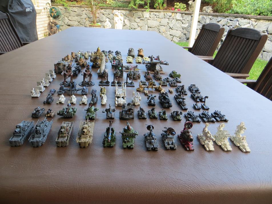 Getting the group together to clean and paint the unpainted ones. Many of the grey ordinatus have previously been shown close up on my thread "Ordinatus Greys". So this now includes scratch builds and some heavy tanks from a variety of manufacturers. overhead shot.