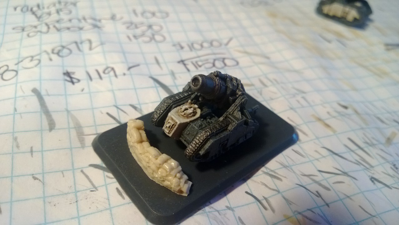 I plan on one having a spotter mini added to the base (they've got a pair of binoculars). Random ammo crates/bling to be added on the rear of the stands. One or two may have a custom servitor/loader robot.