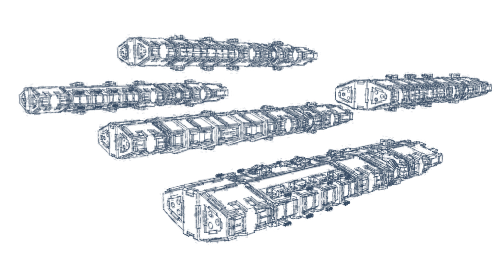 maybe a battleship in the style of the kharak mothership with module slots in the side? Now that i think of it. Weapon moduls that can be placed in every ship type(biggest warship to smaller frigates) would be awesome.