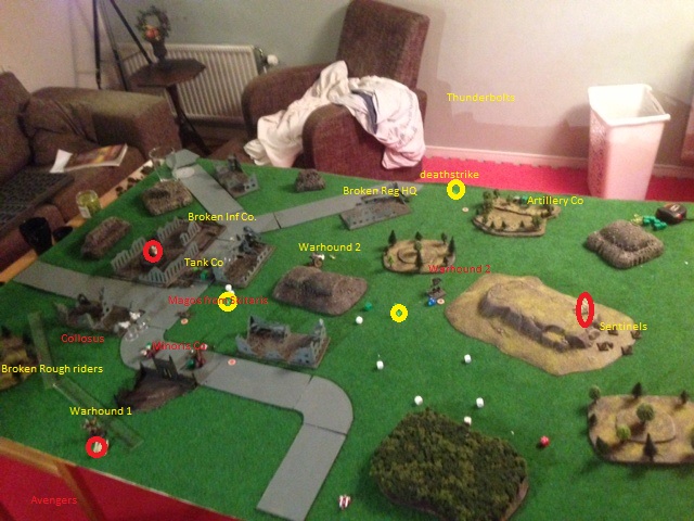 2nd Collosus formation retains with help of SC and engages the Tank Co. They loose 2 robots and breaks.