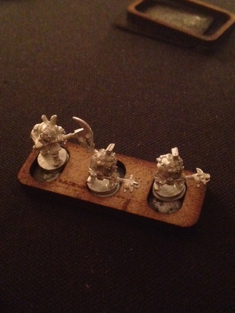 This shows the three potential bases for my big mutants. Either a standard sized infantry base, a heavy weapons sized base, or a small artillery base. The mutants weapons seem to hang over the side of the infantry base, and I think they will make the base fall over as they are a little top heavy. I'm thinking of using the larger hollow base on the back left of the first photo. Would this be a ridiculous size?