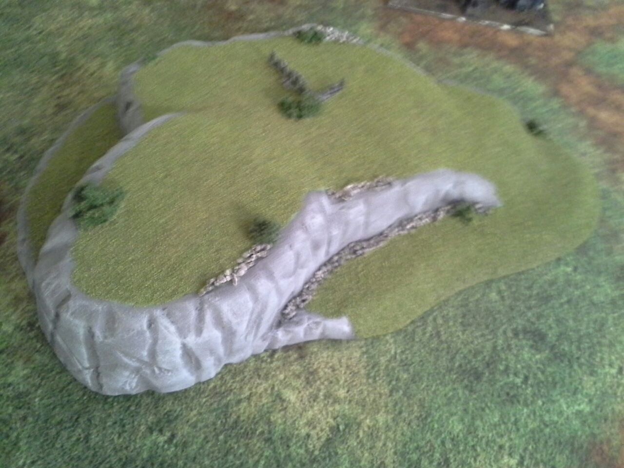 Ya that part of terrain has always been a pet pev of mine, I want to scream when I see ridged stuff. So I shaved off as much as I could with a knife and sand paper then what I did was cover the entire thing(cept bottem) with a polyfilla (stuff you use to fill in drywall holes) and then sand it down a bit to get rid of the bumps and bits. This also helps if you want to glue stuff to it like I did with the rocks ruins and bushs by allowing you to super glue it with out melting the foam. Just be careful when sanding too much cus if the foam shows threw then you might have a problems later.