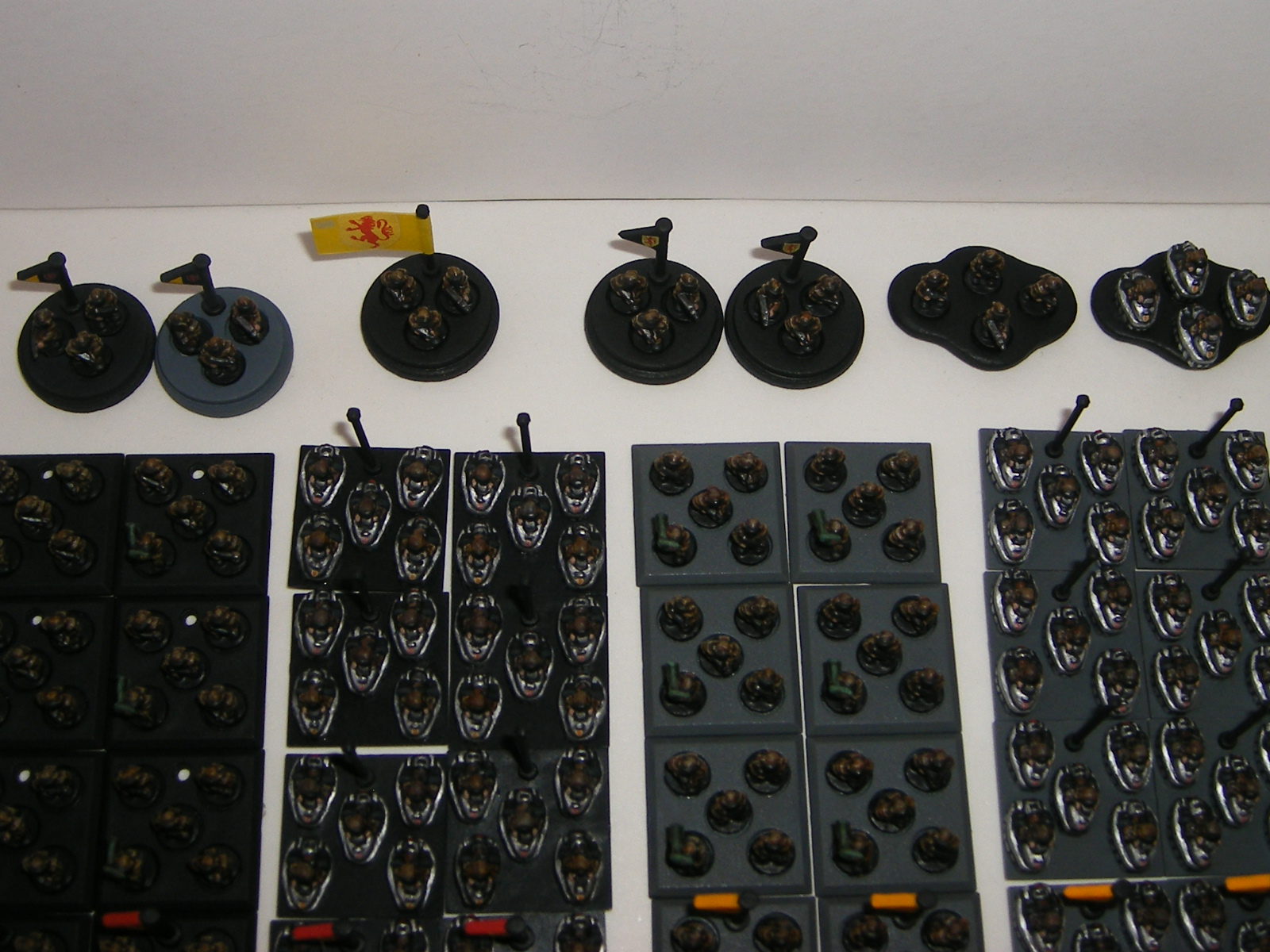 If you are making a new rule-set, the joy of E:A is that the base sizes are not rigidly defined which means that all the above bases are 'legal' and permits people to adopt different basing for different types of unit ranging from dispersed scouts to lines of infantry or clumps of bugs. The only suggestion I have is that all units be based, both infantry and vehicles, as this makes the interaction between units a lot easier.