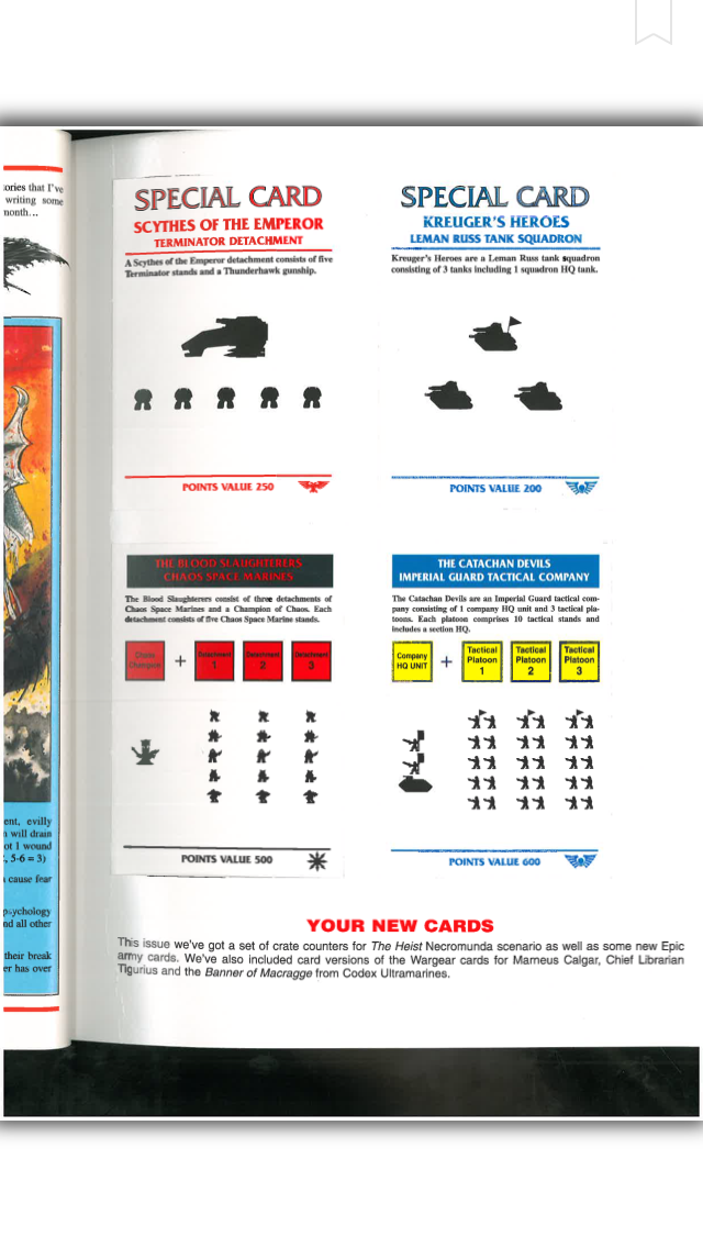 Third, you are using the word "Formation" in a manner that seems incompatible with its current usage. You said: "So one formation made of 1 company card, 1-5 support cards and a special (maybe). If you choose to use this 'legendary formation' ..." At the moment, the word "Formation" refers to one grouping of models that, generally, must maintain coherency with each other and all share the same Order counter, Break Point, and Victory Points. In other words, what would have been found on one "Card" back in 2nd edition. Thus a Company is one formation (despite each detachment getting its own Orders), each Support is one formation, and the Special is also its own formation. Perhaps "Prebuilt Army" or "Legendary Force" or some other such phrase could be used for them?