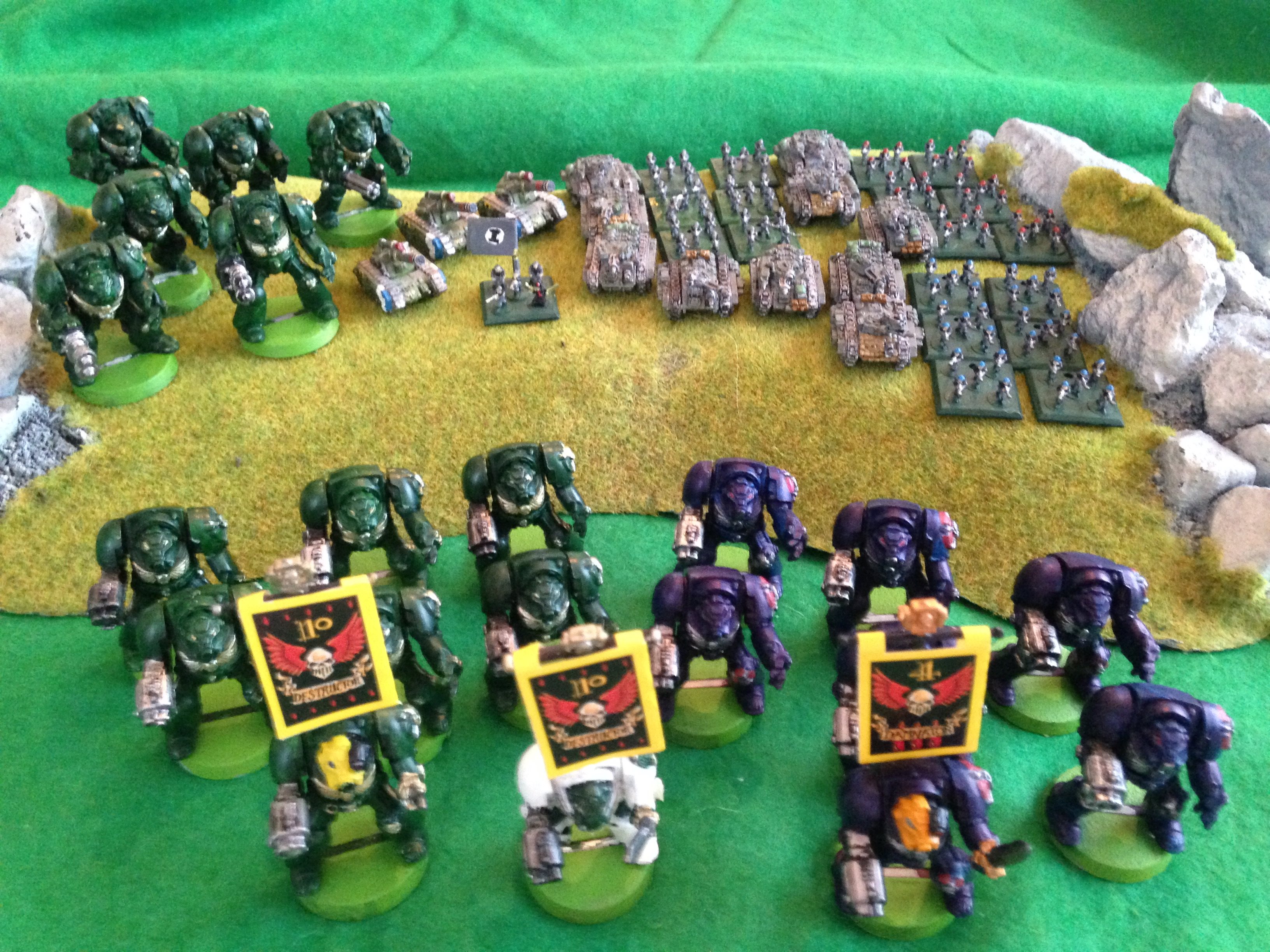 Ok, another technical victory. The Knights have died. However, the Mech Infantry are almost unscratched and have good defensive positions. NEVER EVER underestimate the power of an entrenched IG grunt (AS Chaos soon would find out), especially one that is backed by a detachment of Castellans and a Basilisk Battery.