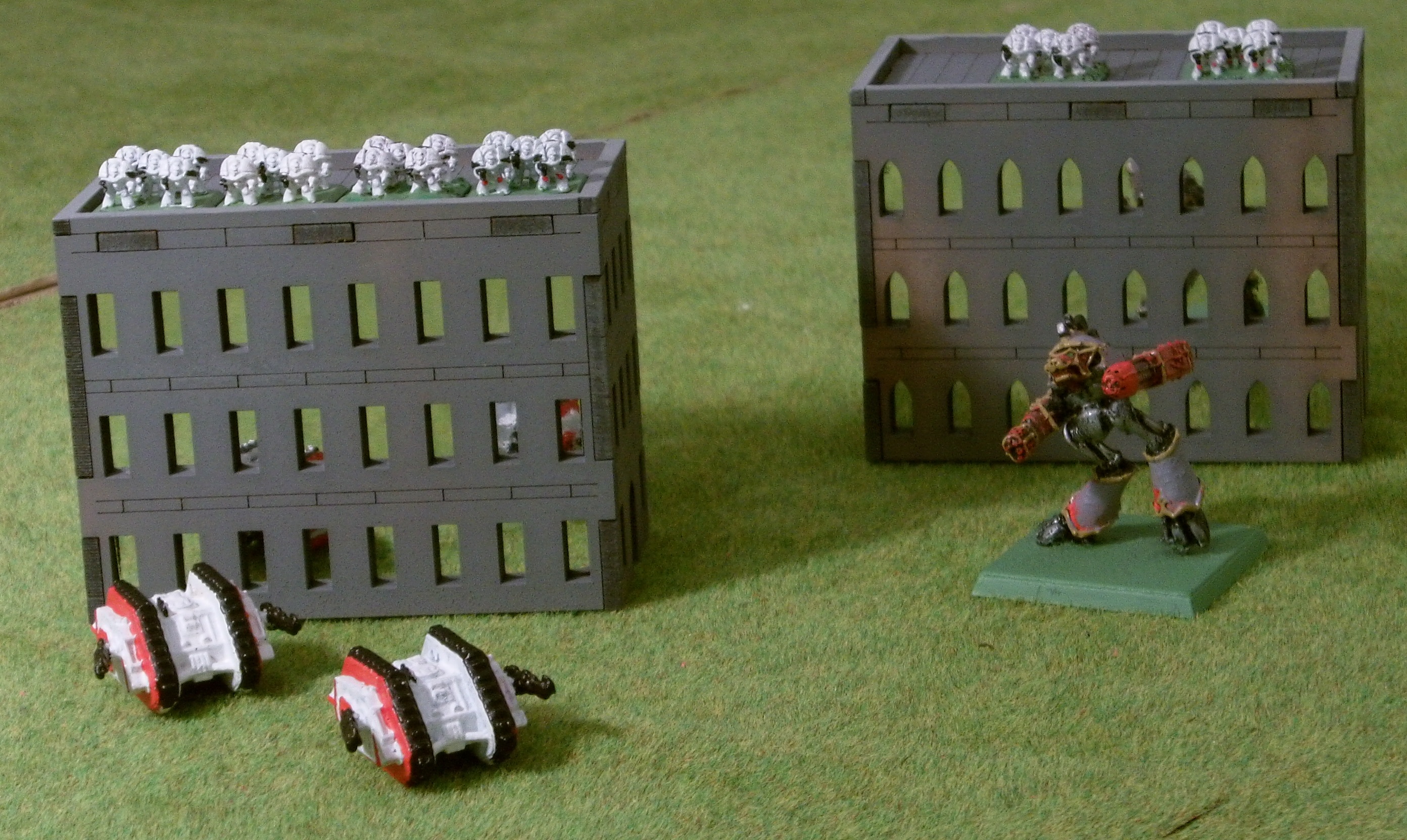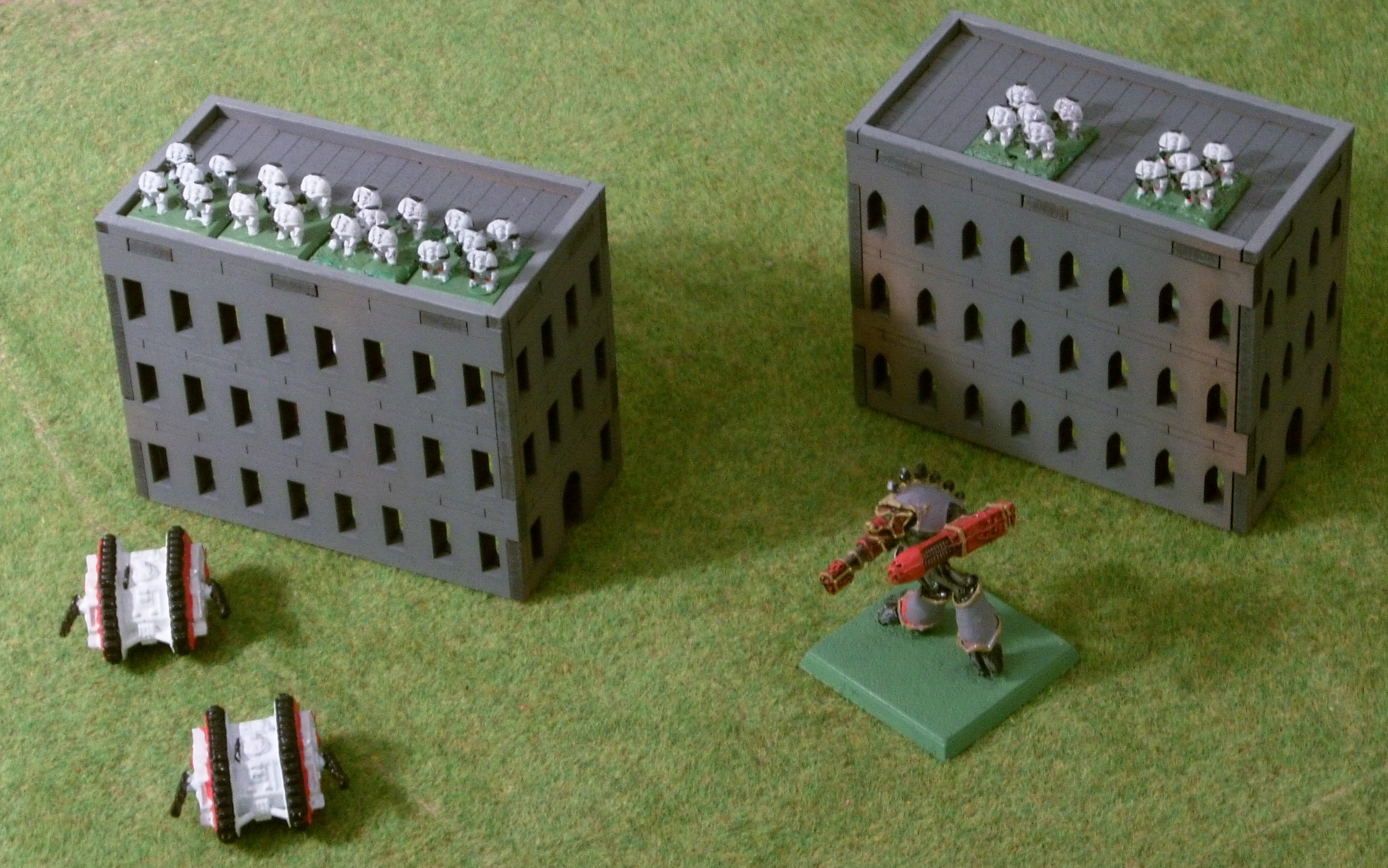 On a separate note, you had asked for suggestions... How about walkways to link the buildings? The idea is that troops could run across the networks of walkways to get to the best shooting positions.
