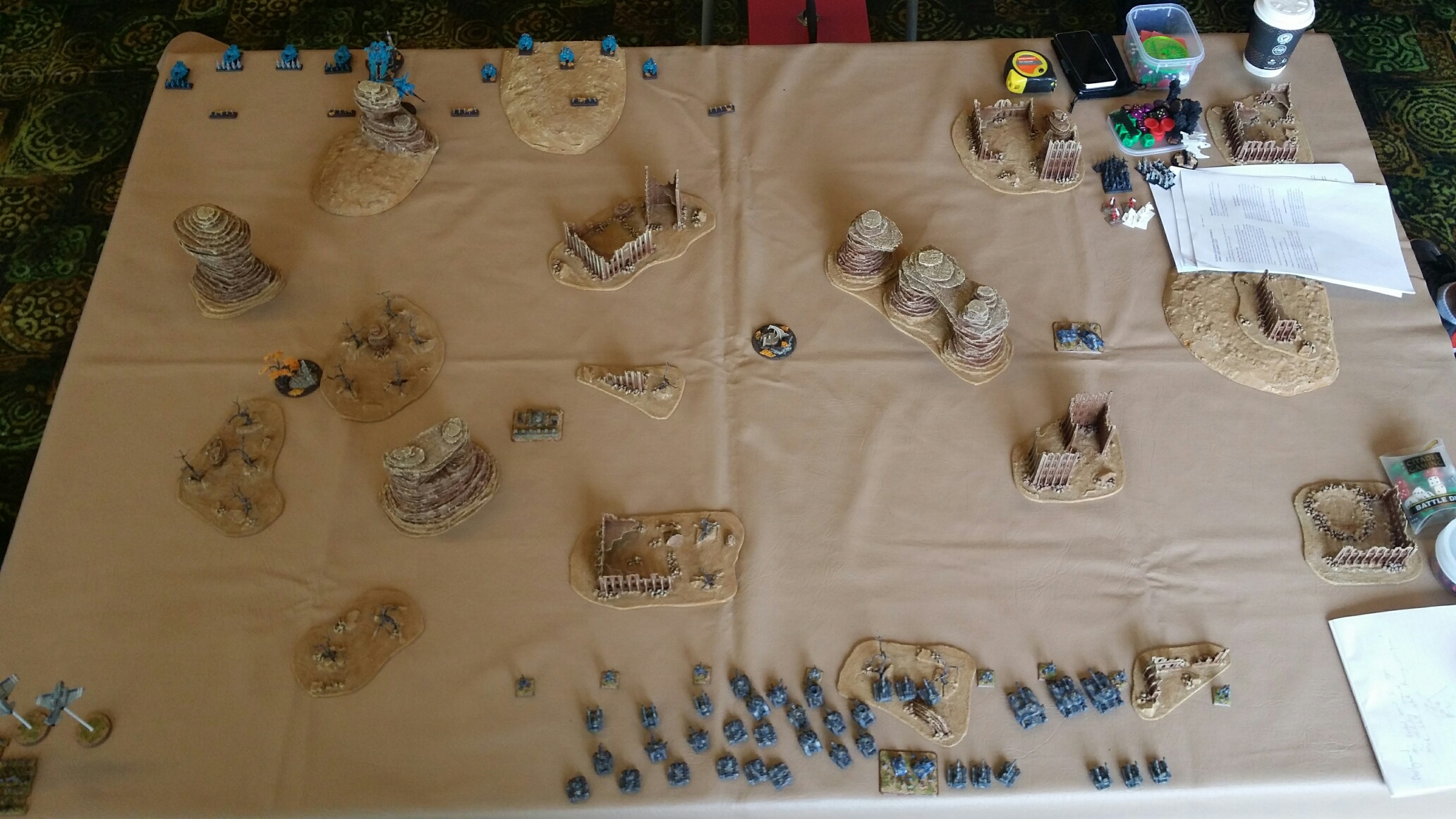 As it turns out the Super heavies brush off the attention of the wraithlords and inflict 3 casualties for the loss of 1 DC. Wraith lords lose the combat and that seals the defeat for the Iyanden. The rest is a mopping up operation to allow the guard to sneak away with 2 victory conditions.