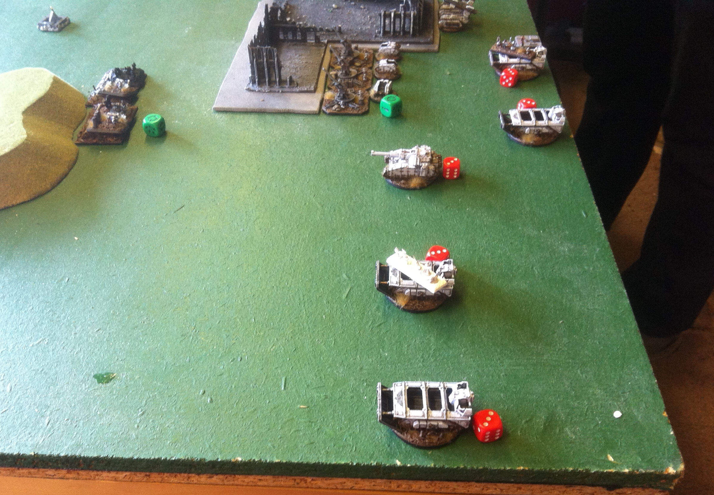 D. Hvy Tnks Marshall – Fail & shoot Storm Serpent 4 shots, 4 hits. SS takes a wound & 2 BM.