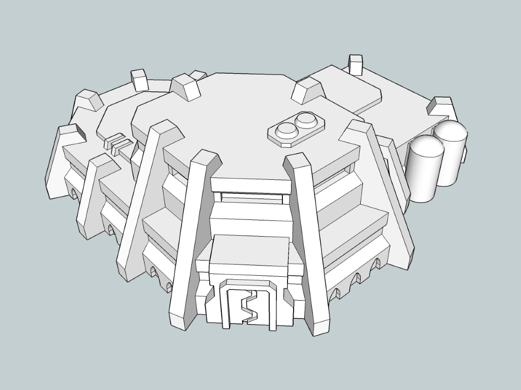 I decided to scale the whole model up a little bit compared to the original bunkers, so it's 10% bigger than it would have been. I've been working on some ideas for connecting pieces like this together into larger complexes so an updated bunker design may be part of that (the older ones should still work too, they'll just be slightly smaller).