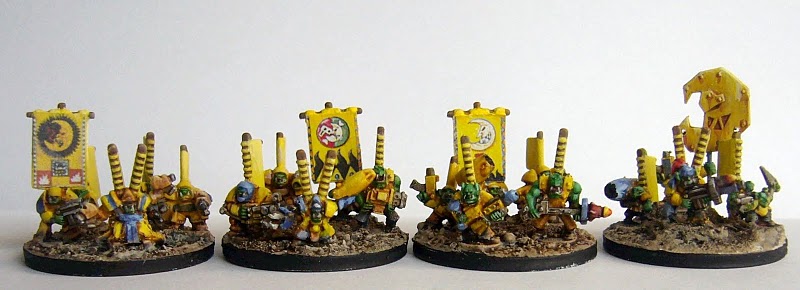 I didn't realise I could combine my shokk attack and artillery pieces too! I have about 16 stands of those, plus all the heavy weapon guys. I think I'll mostly give the artillery and shokk attack to the Bad Moonz (since they can afford Ork tech) and the heavy weapon stands to the DeathSkulls(cos they stole em). I'm converting half the big shootas to Lascannon and other cobbled together heavy weapons. I'm also hoping to see if I can build some pulsa rockets, or convert some of the plastic big gunz I have. So that should be a nice mix.