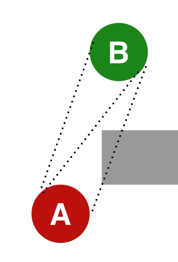 For simplicity let's say solid lines are unobscured LoS, dashed lines are partially obscured LoS.