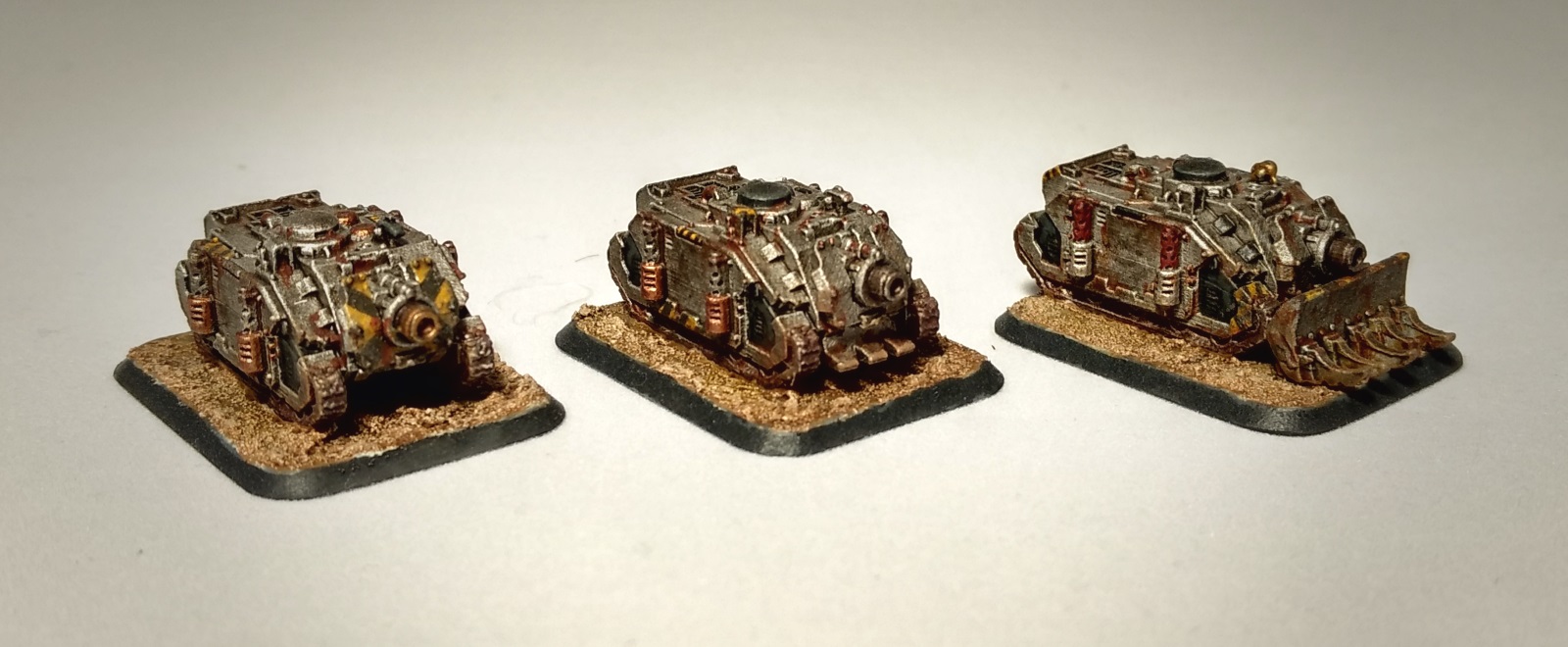 As the Imperials advanced towards the inner hive, increasingly cunning ambushes were encountered by the Guard forces. Long since relegated to reserve and second line defense forces, the Malcador Heavy tanks of the Iron Warriors were frequently used as the lynch pin of area defenses. Despite being considered to have an under powered engine for a tank of that size, the thick slab adamantium plates coupled with the claustrophobic conditions of Urban warfare made them almost impenetrable except to the largest tank killing weapons. This Malcador defnder tank detailed below was hit numerous timed with perpetrator rounds, only jamming the starboard track such was the survivalbility of this venerable design.Attachment: