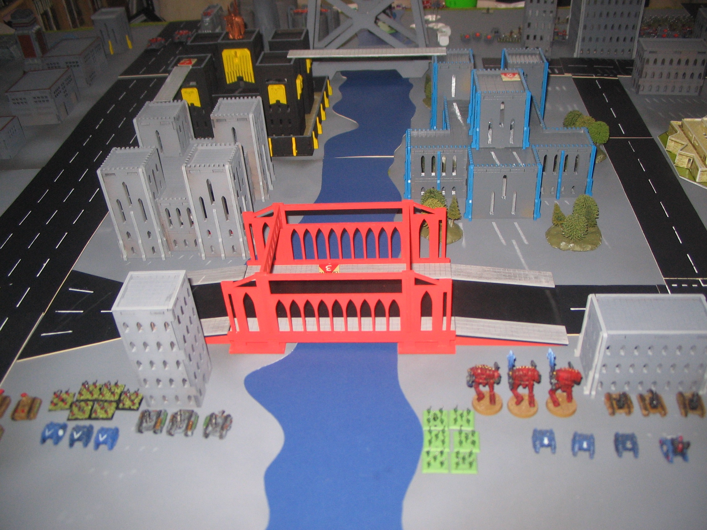On the right hand side of the Highway Devestator Marines and Heavy Tech Guard would infiltrate buildings, take objectives and provide fire support, the hell hounds would flush out any infantry coming from the other side thinking of doing the same!