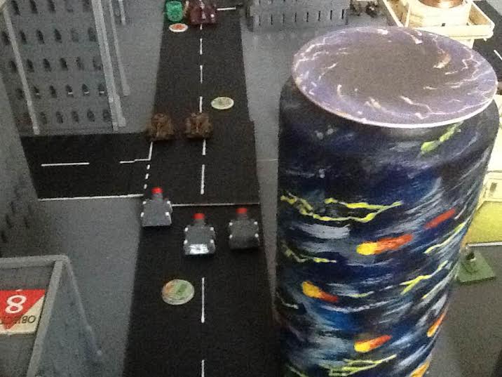 The vortex moves! Unfortunately for the Ad Mech it moves towards the monument, destroying it and slaying more Assault units, breaking the company! (Note we only remembered about this early on in Turn 3, pics shown below)