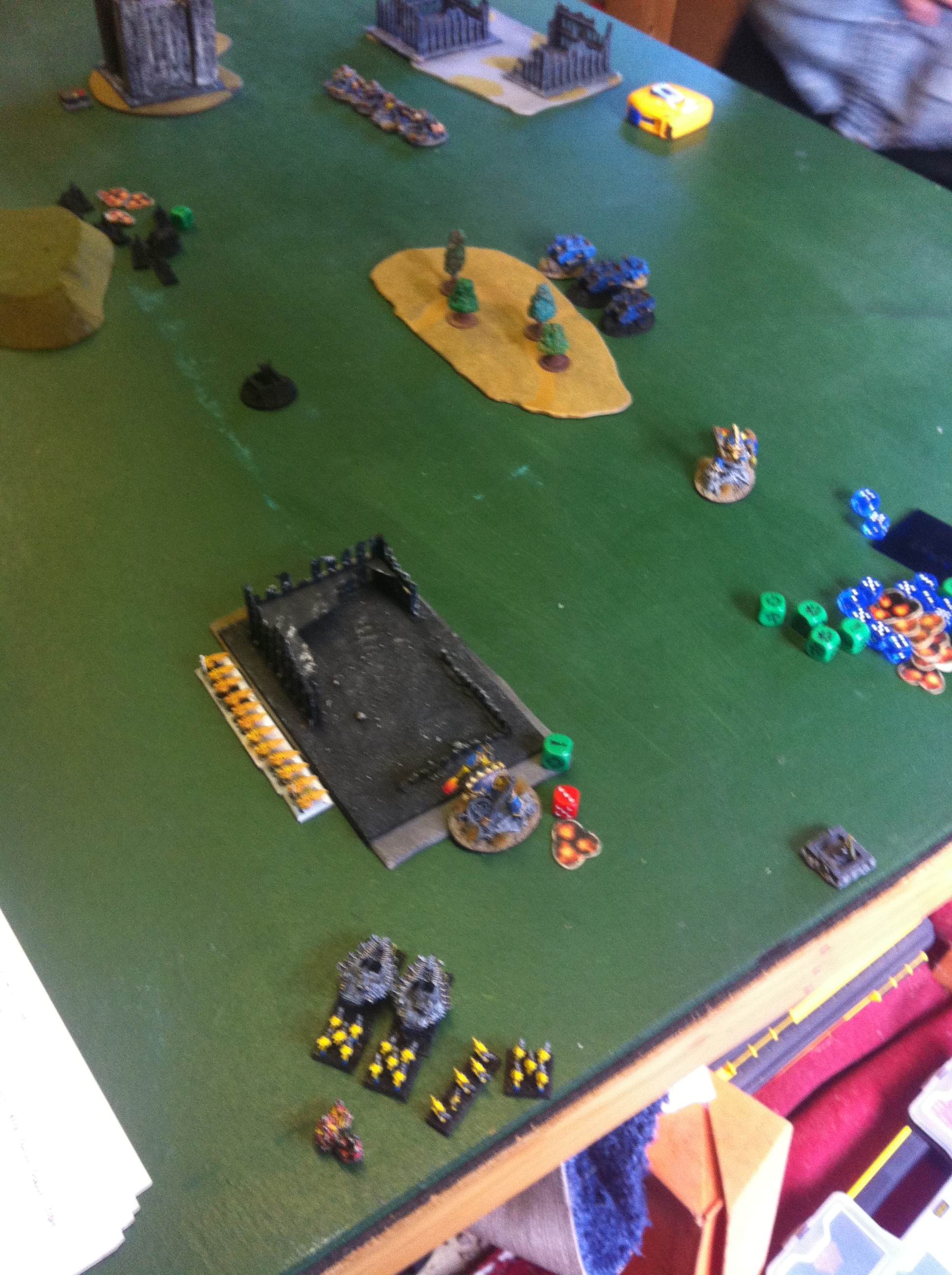 11. Vampire Raider ground attacks the Terminators – CAPPED – Doomwings lose 1 to AA (2BM) 1 hit on VR saved. Greater Daemon takes a wound (BM)