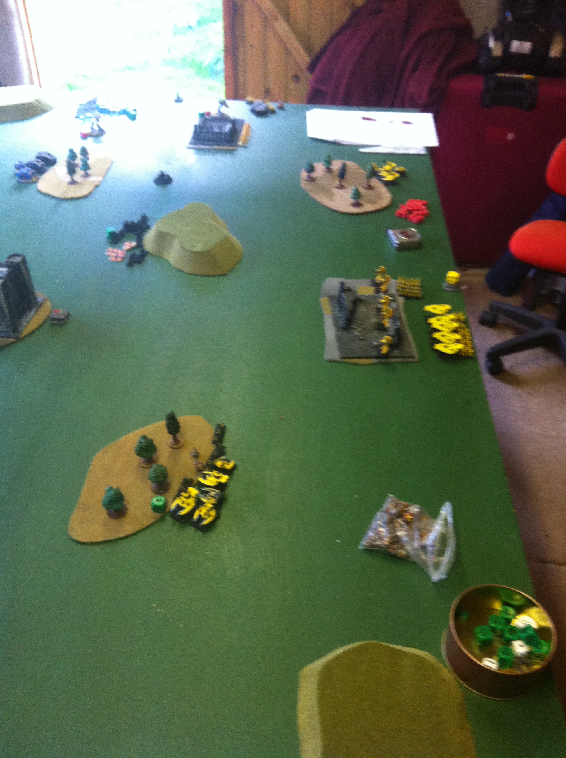4. Spacecraft – Orbital Barrage hits Ret(SC) & clips Ret. Ret(SC) lose a Rhino & Supreme Commander (3 BM). Ret take a BM