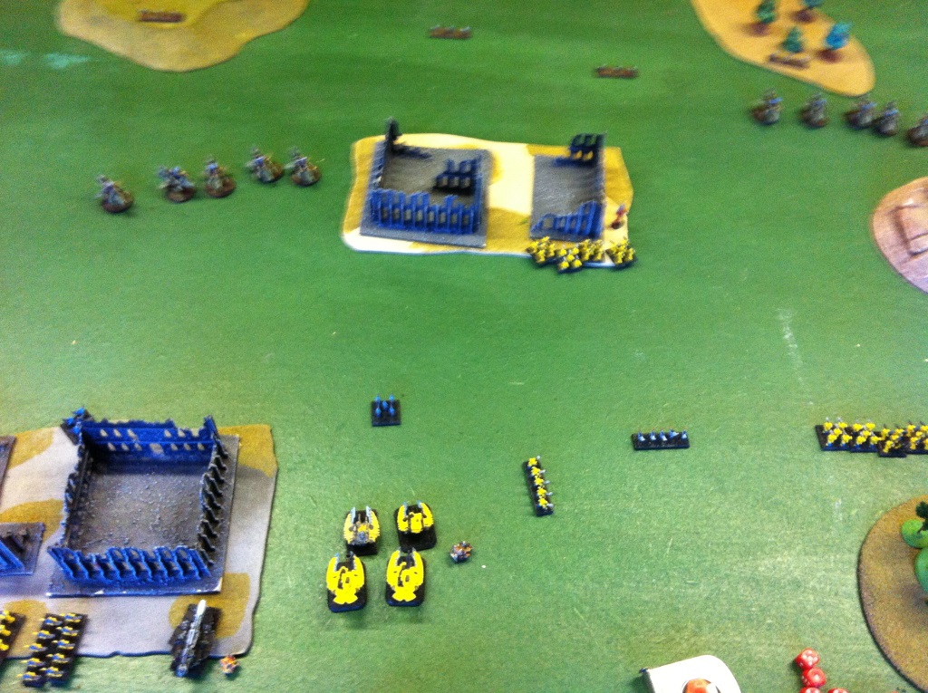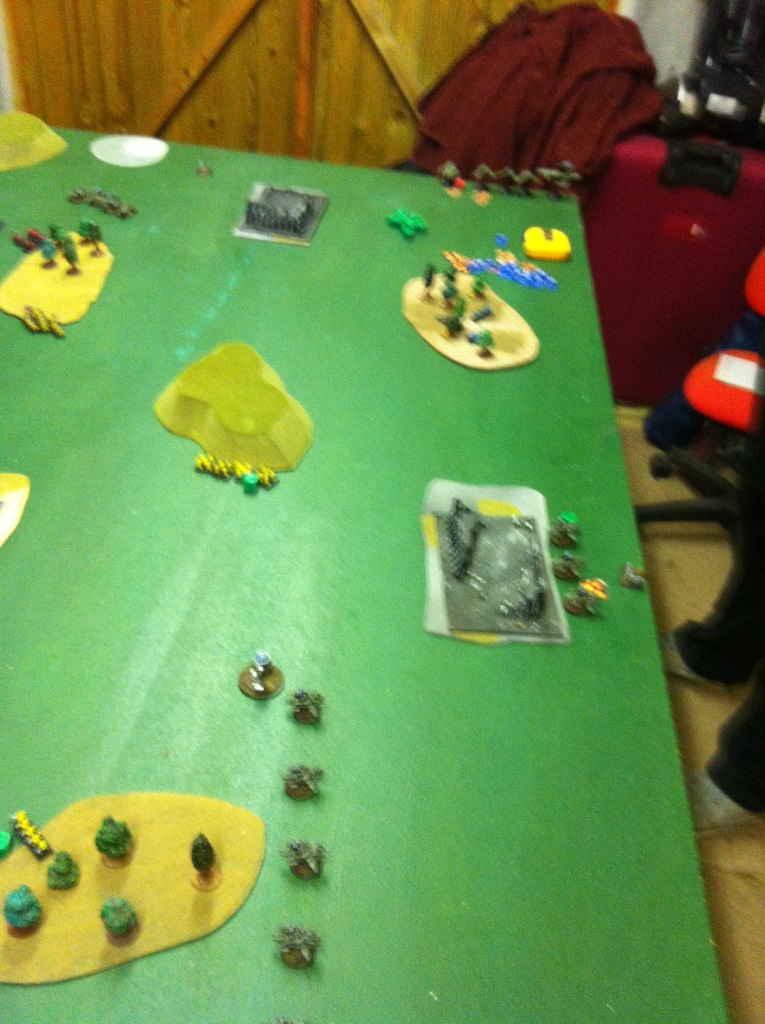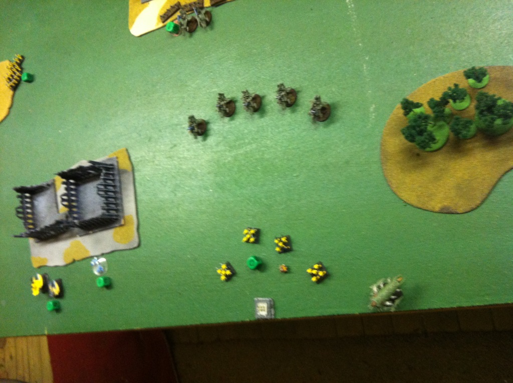 1. Iy – SS(4) engage Mandrakes, clipping 2. They lose one and kill one. Mandrakes win roll off and wipe out SS(4). Mandrakes move forward blocking possible Avatar engagement of Ravagers. (Oops that went wrong)