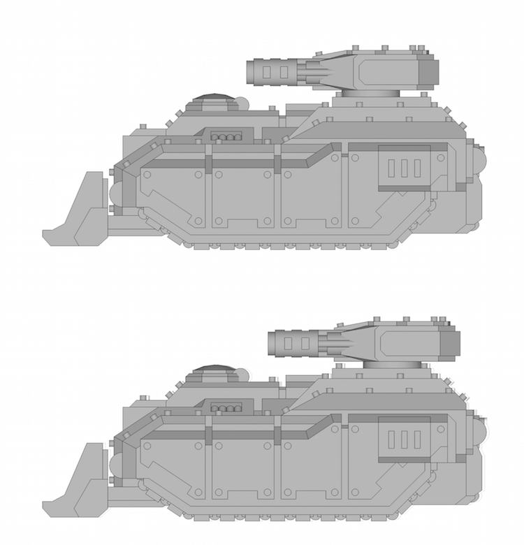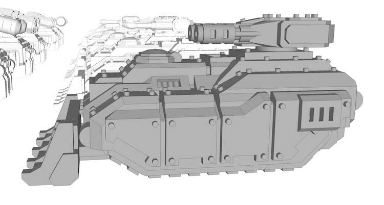 You think? It's a bit of a tricky one. If I move the turrets forward the canopy won't open without hitting some of the weapons (battlecannon and melta turret). Move it lower and some turrets (flamers and missile launchers) won't be able to turn anymore.