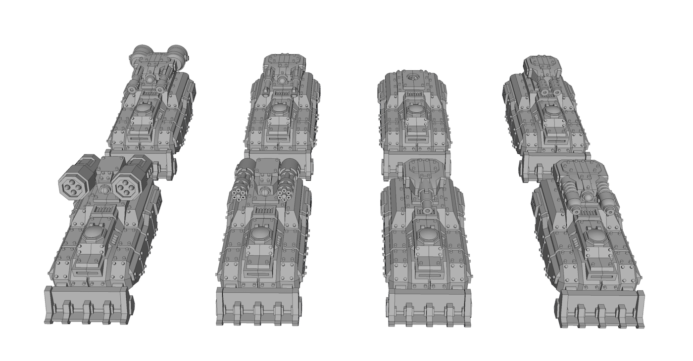 One last thing I would like to do is to design some sponsons that could be added to them, then the whole set should be ready I think. Oh wait...probably a turret with a single autocannon?