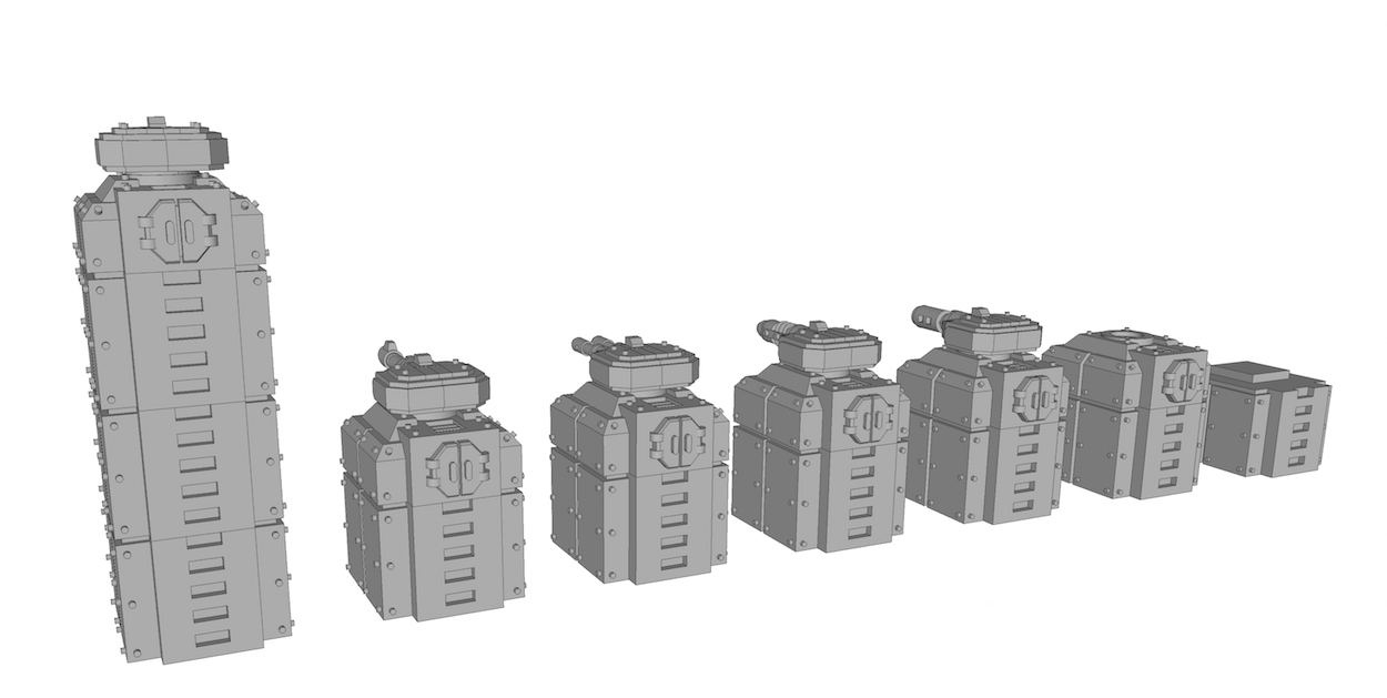 The evil and looted upgrade sprues have been put on hold as well. Problem is that these components are (a) a bit too fiddly and (b) when beefed up (for easier production) end up make the IVR look out of proportions. The best solution here is to probably to take the hull and turrets and tweak them to make them look evil or looted and then print those, rather than the adjustments being separate bits.