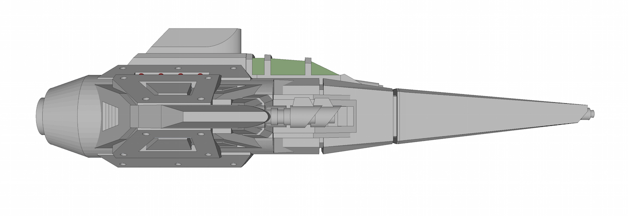 Ok, so I started working on the missile launcher. Felt like doing something different from the underslung missile launcher, wanted to try out something more akin to the rocket launchers from the Dreadnought fighter as seen here.
