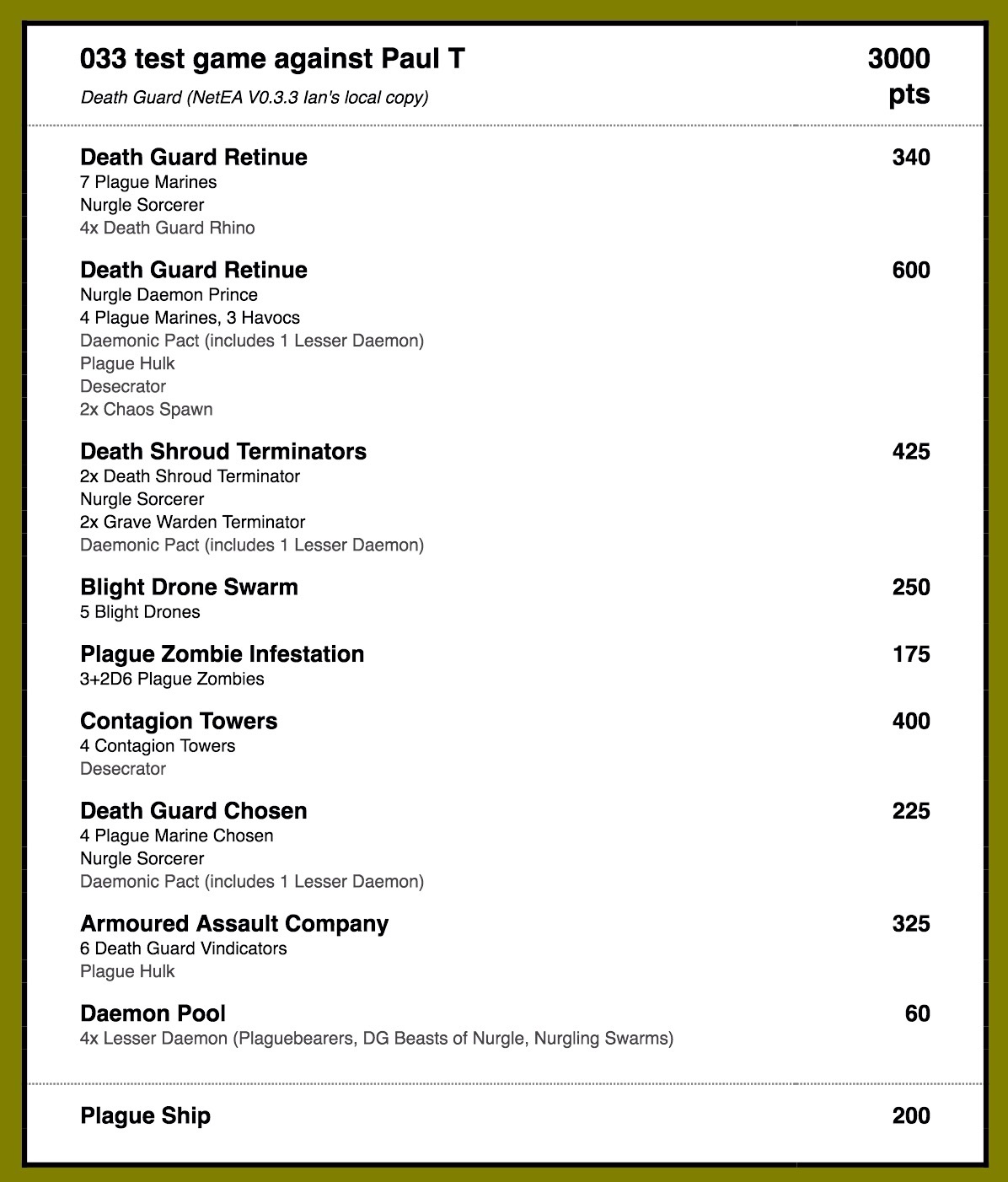 By the way, this was the original planned list, But I didn't have the potential 37 Zombie + Nurgling models, given that the Nurglings I've got painted up are usually representing Zombies...
