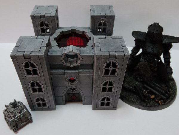 Designed to fit on the small building base included in our 6mm building base set (whereas the warehouse and power plant fit on the large). The kit is highly detailed, featuring a wooden door with a cog design, a stain glass roof light and grand windows on the sides and rear. Above the entrance is a 'flying' stone circle.