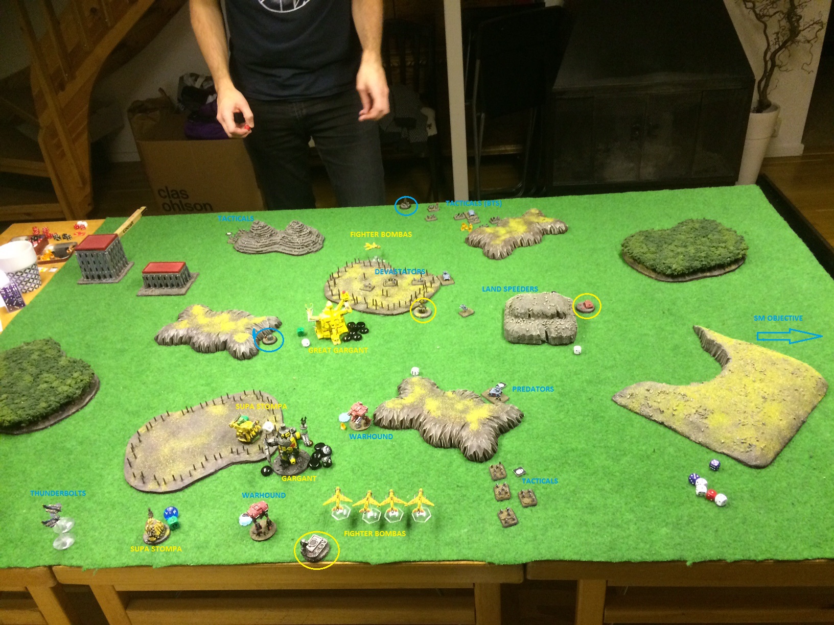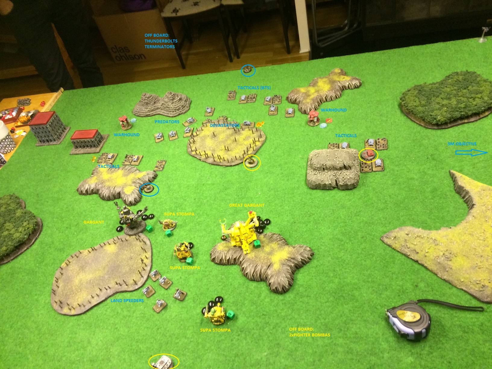 The Marines did well but the assault to the Supa-Stompa i think that it was a bit too much suicidal even if they managed to destroy the Supa-Stompa, maybe would be better to assault the Gargant, using it to block support fire from the nearby Supa-Stompa, or the Blitz Supa-Stompa, and get more crossfire opportunities for the others.