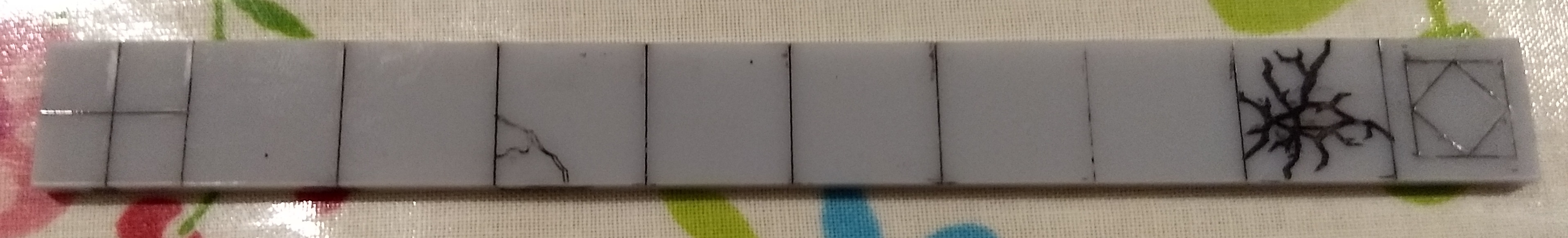 Hi, ok i'll lose the heavily cracked tile in the corridor and the diamond tile and put some more cracks in the other tiles. One of the medium rooms I will make up with the tiles that have the little squares around the border (as an armory), and one of the large rooms with the diamond design (as a great hall) - those i will add only a few cracks too, working on the assumption they would be better maintained :). I'll make some of the rooms with the 4 square design alternating with the large tiles and some rooms with the 'very small' tiles in a grid alternating with the large tiles (so full tile, grid, full tile etc) - if i made a room completely with either the 4 square, or the small grids, then it might be really hard to work out the actual 15mm squares!