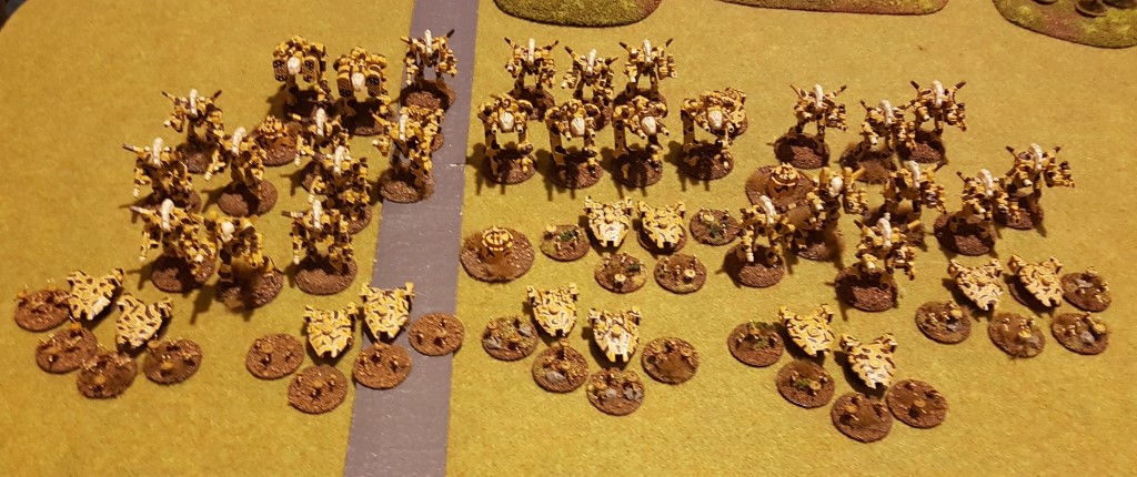 I'll go back and have another look at your Riptide version of armament. The extra shooting attack probably makes more difference than I thought. Also the 25 cm mobility, with some 10 cm Tau Jetpacking afterwards makes the shorter ranged options still reasonably effective. More up close and personal. So I've retreated from negative to I'll try it and see!! Having one Riptide in a Y'vahra formation did give that extra ranged BM placing ability too!
