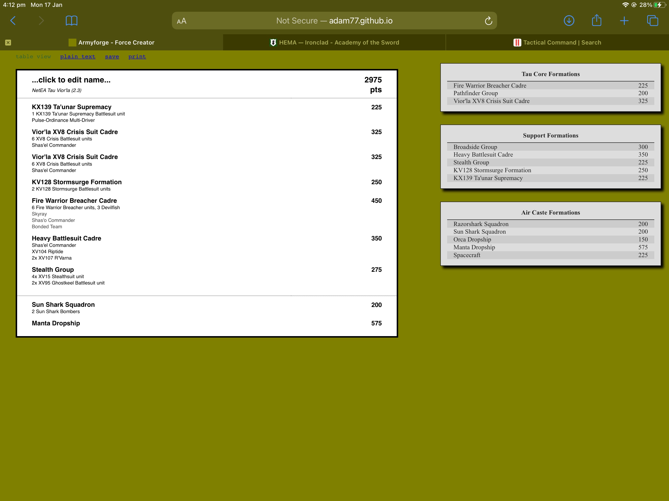 Suggestion = Duplicate the Tau Special Rules from the 3rd Sphere into the blank page along with Experimental Weapons, as I forgot to print the 3rd sphere in the event and it caused a bit of confusion from opponents (“why are you using the rules from the other list?”)