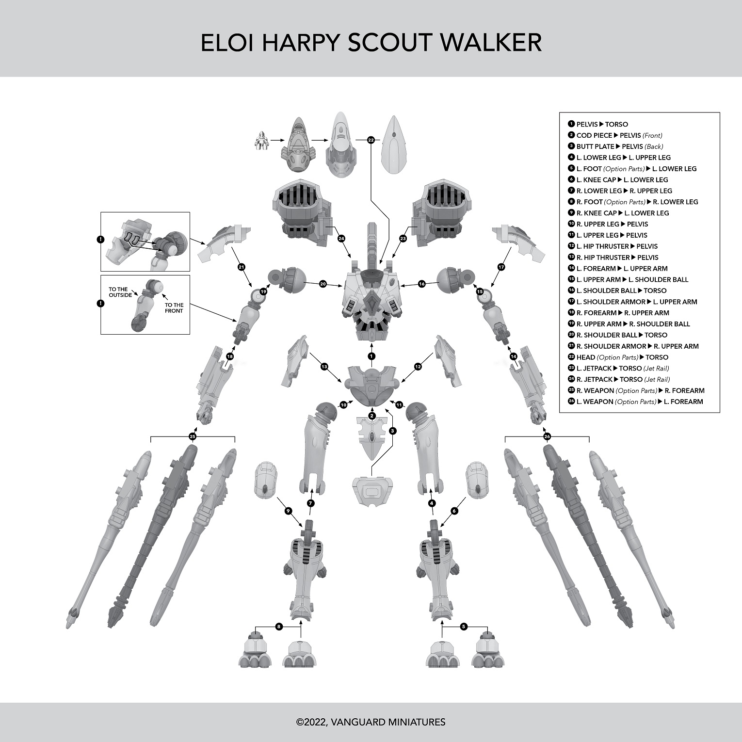 Eloi Federation HARPY released this evening. A single multipart 3D printed model with some modelling options and three arm weapon choices. https://vanguardminiatures.co.uk/shop/e ... ion-harpy/