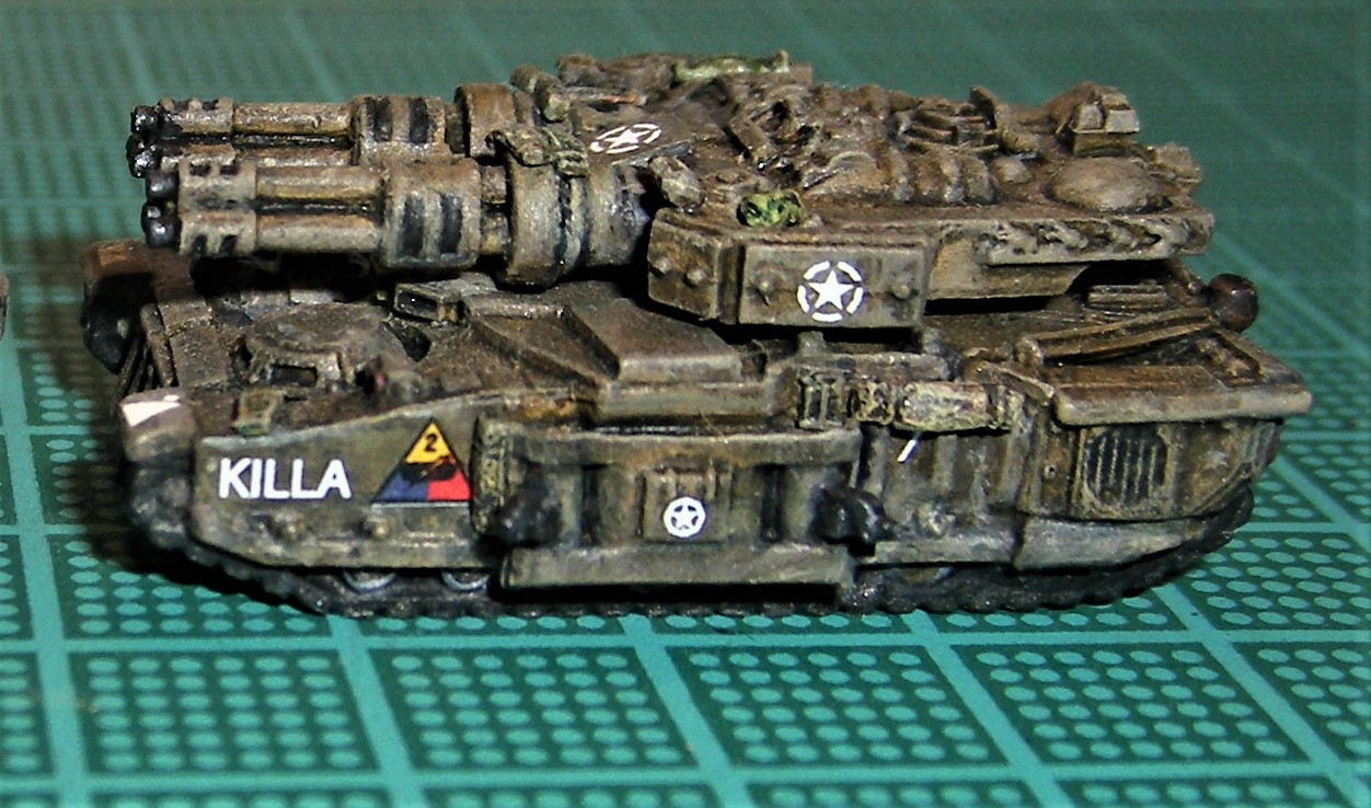 Just finished the 2d Det of Super Heavies[2d Armor Div. "Hell On Wheels] that I will use as Baneblades. The Hulls are OOP Exodus Wars + parts from Vanguard + bitz ... Working on the Command Tank now ...