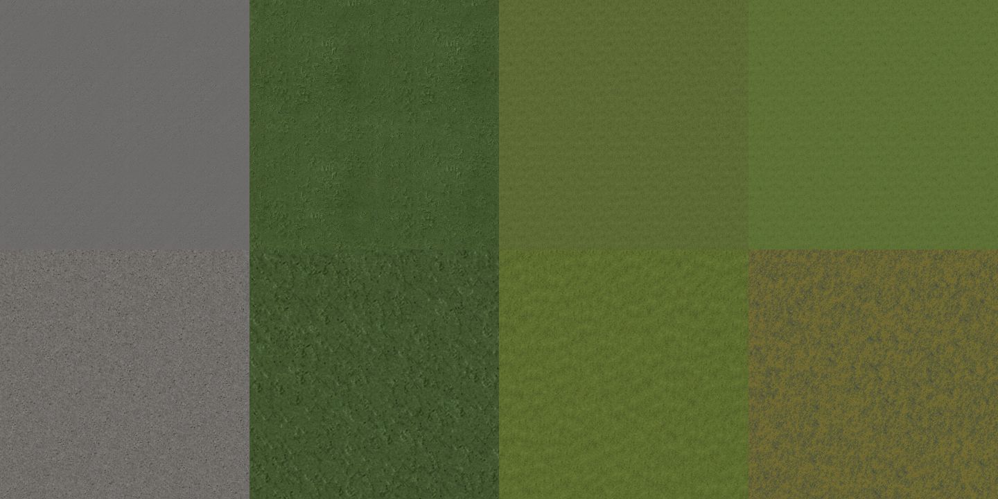 - On the dark green and and first light green, the tiling was too noticeable, so created a new texture for it.