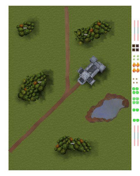 - 120x180 Hills in center, forests and scrub screens: This one comes entirely from my head.