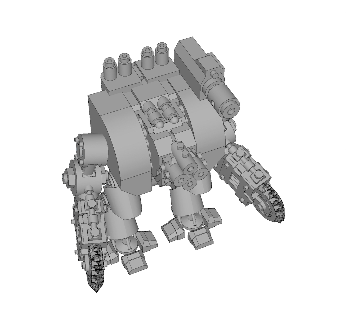There's a new entry in the (very early) WIP section. Basically a shock-assault robot. Armed with two close combat weapons and a heavy gun on its back. The machine still needs a whole lot of work. The model currently stands at about 12.5mm tall