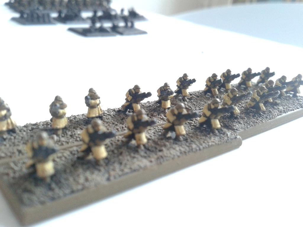 In the next days I will post some pics of the (green highlighted) ready painted infantry stands. I just need some daylight and a steady hand ...