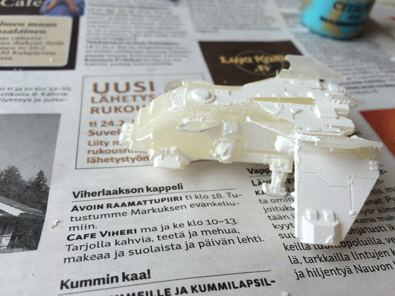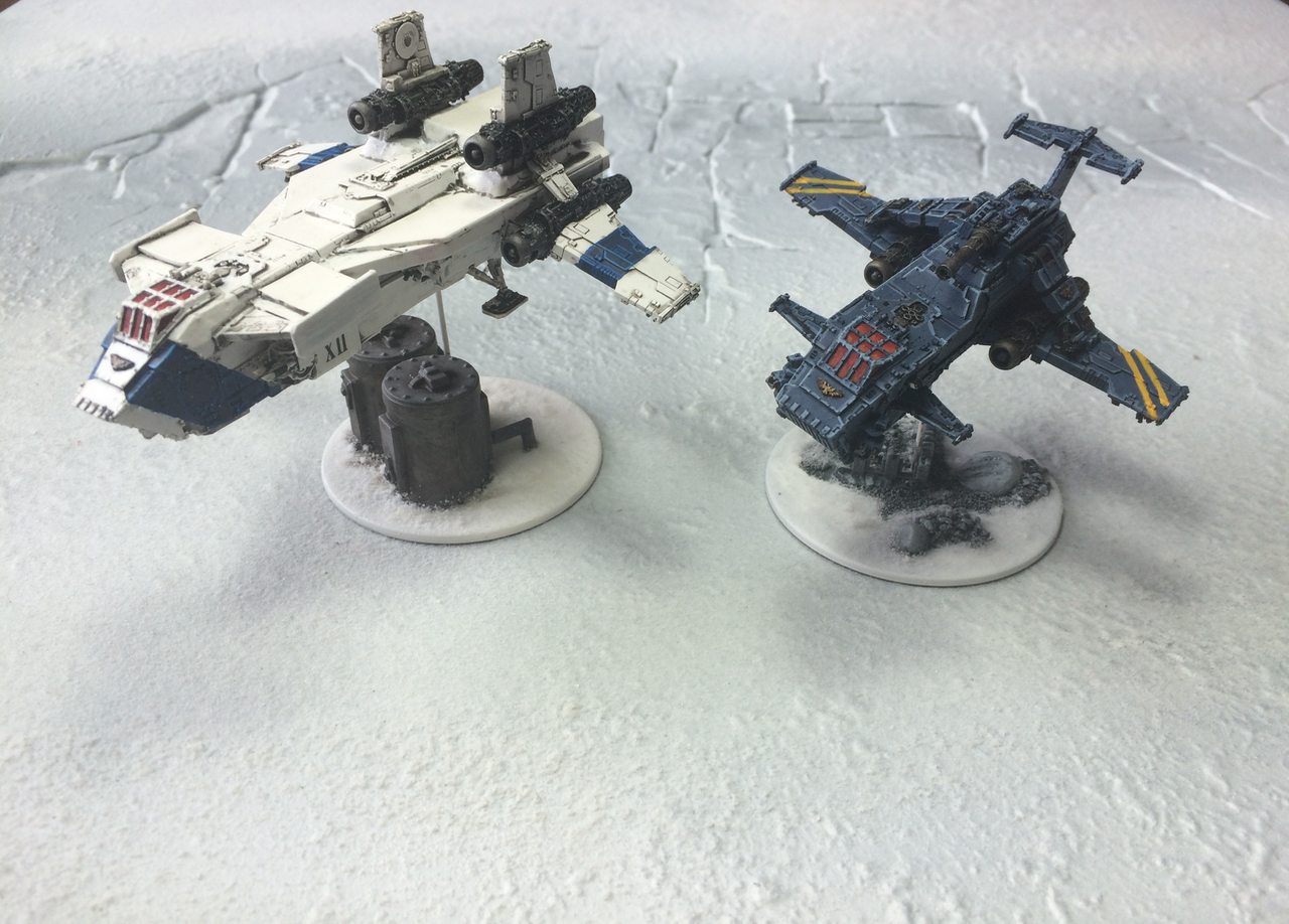 Stormbird - formerly a TH transporter, Space Wolf Thunderhawk for scale. I used the FW picture of the 'Sokar' pattern Stormbird as a reference, but felt that the craft should be slightly larger, so I made it longer. The model does not feel yet quite finished, but I'm not really sure what to do to it... any ideas?