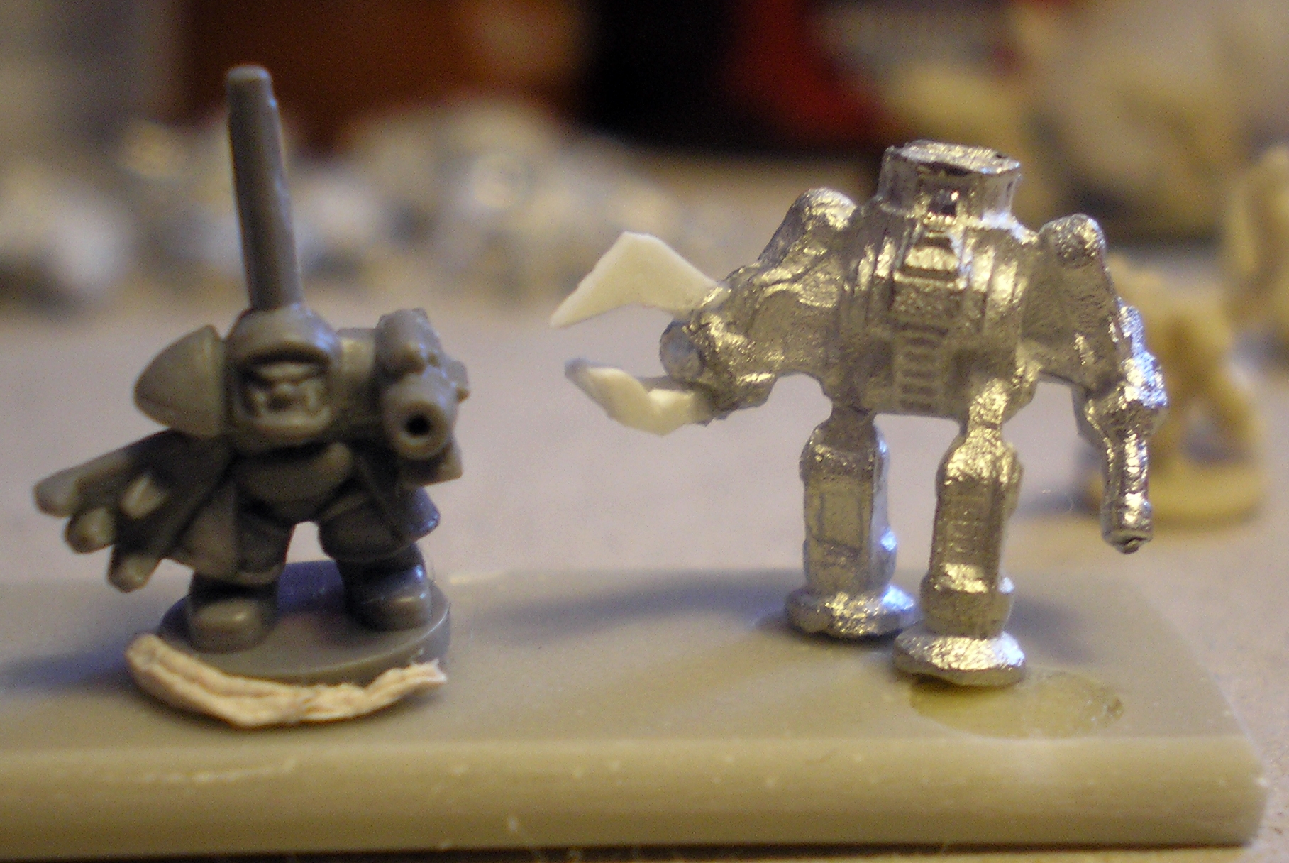 A GW Nob vs DS Prussian Robot -size is correst, just it looks too slim. They will get a funnel also -the lizard-like face is just the photo's fault..