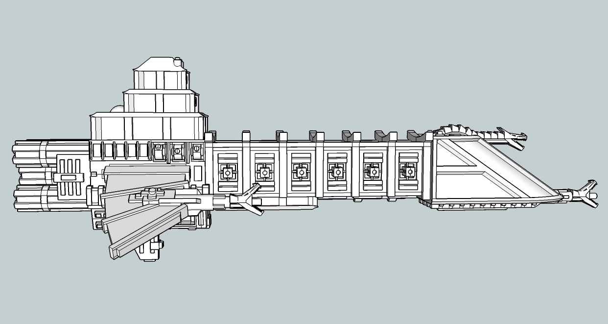 @ Sawbones: I tried giving the wings a crescent shape, but they ended up getting in front of the port/starboard batteries... I have to ponder on this some more :)