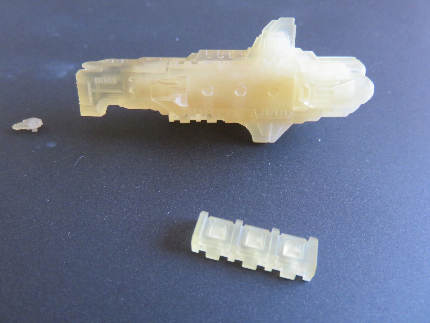 Frigate: single kit containing a hull and parts to make it either a carrier or gunship. -> sent off to Vanguard Miniatures.