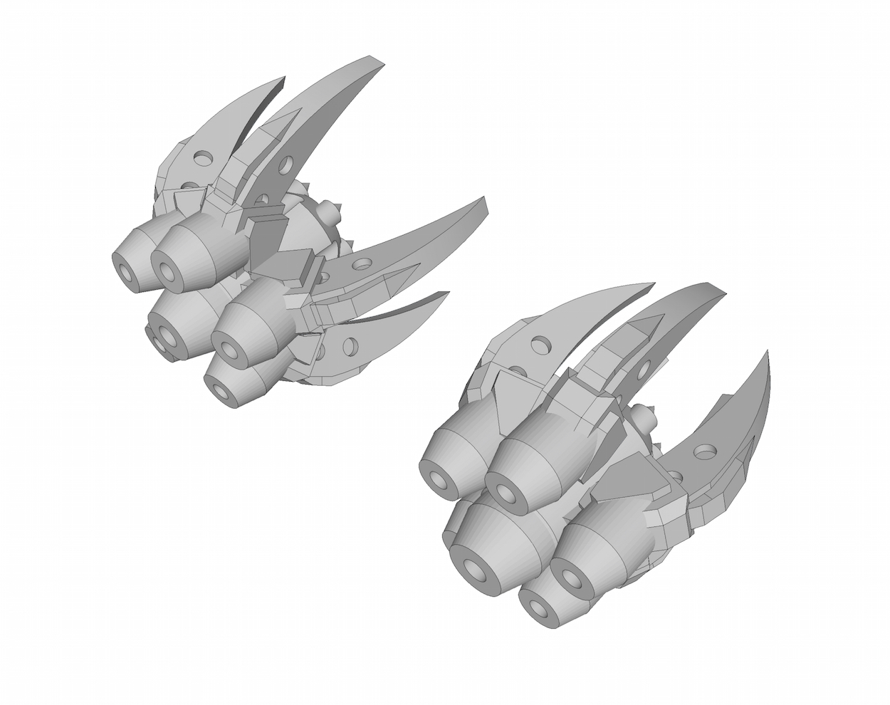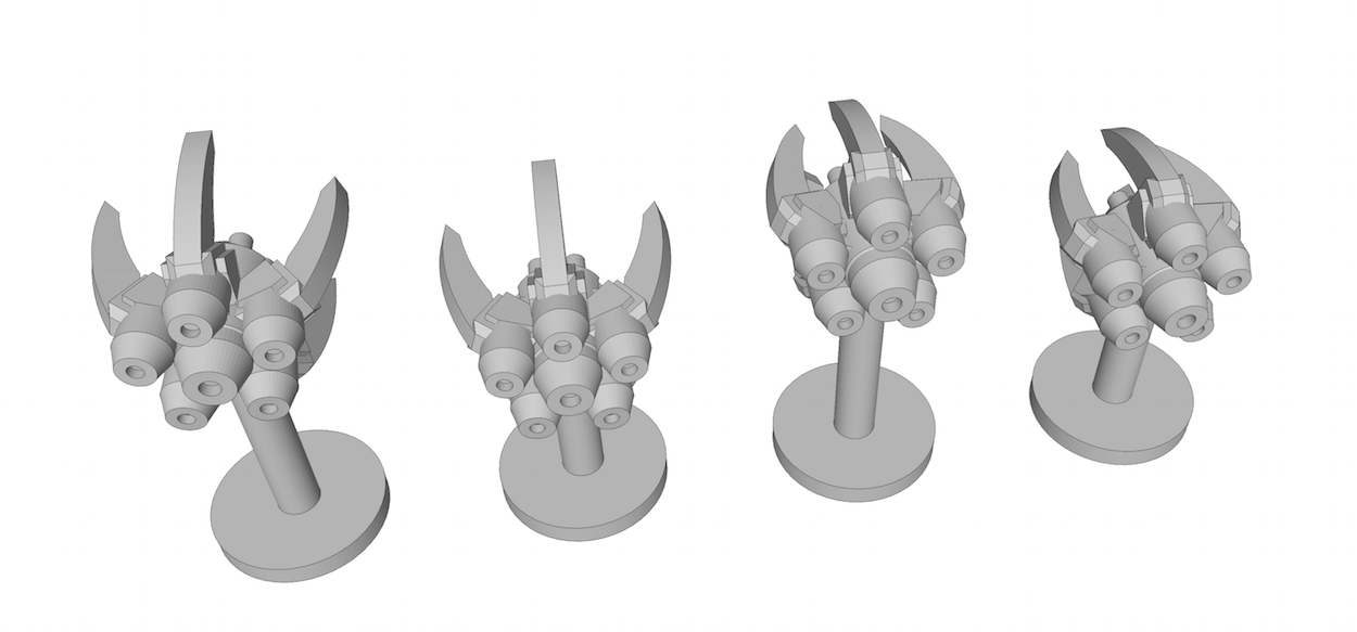 Space stations: got two variants, one with guns and another one with launch bays. -> some problems in the .stl file that need to be fixed before it's ready.