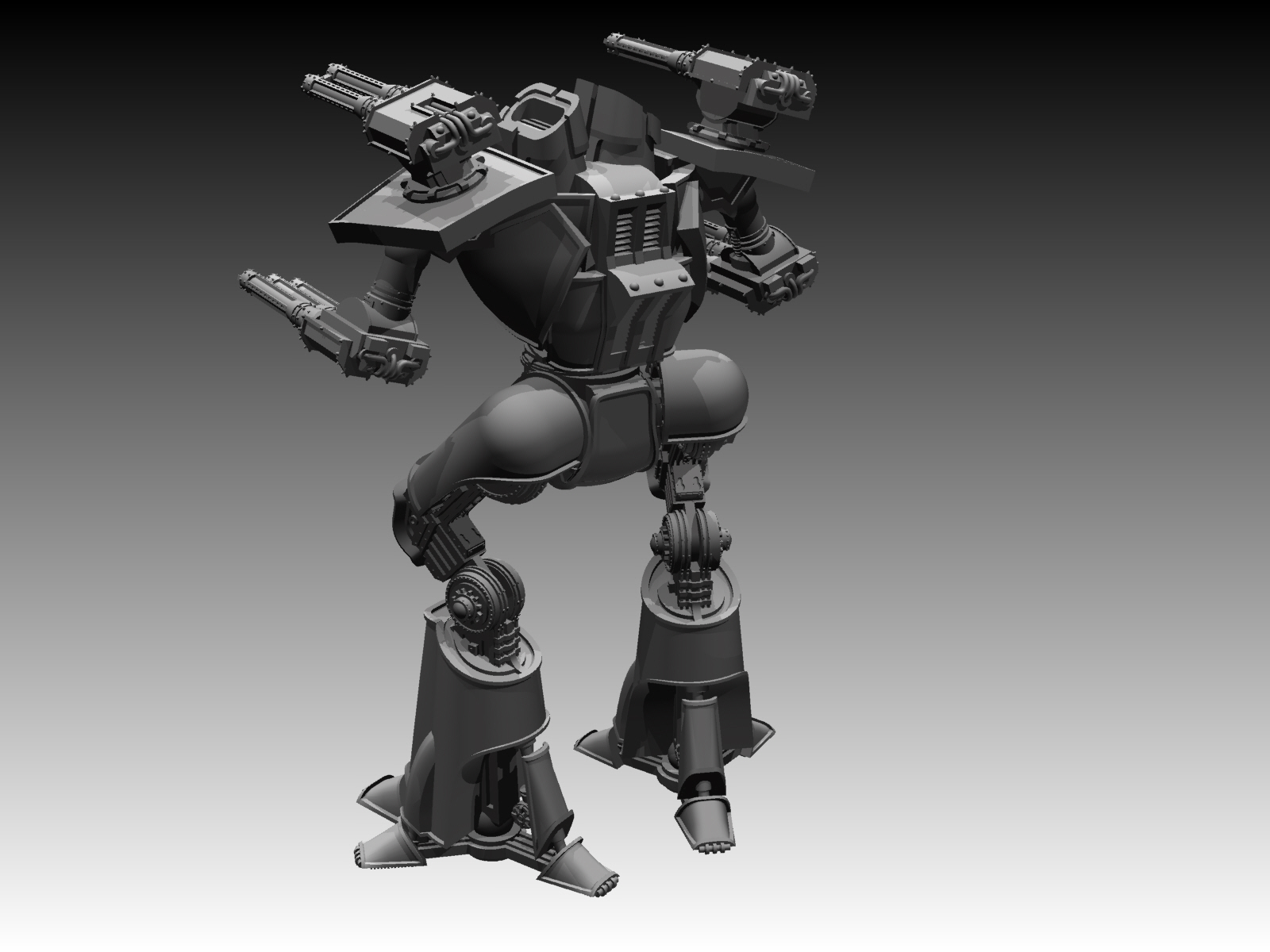 Adding a bit more detail to the legs, and another weapon added (an arm mounted version of the 300mm cannon from the ordinance conveyor).