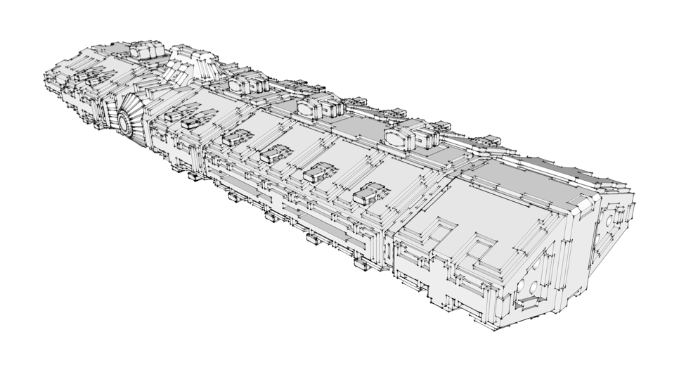I'm also planning on making the 'gaps' between the blocks of the ship (between prow and launch bays, between launch bays and engine, etc) a bit deeper, thereby also lessening the singular block feel.