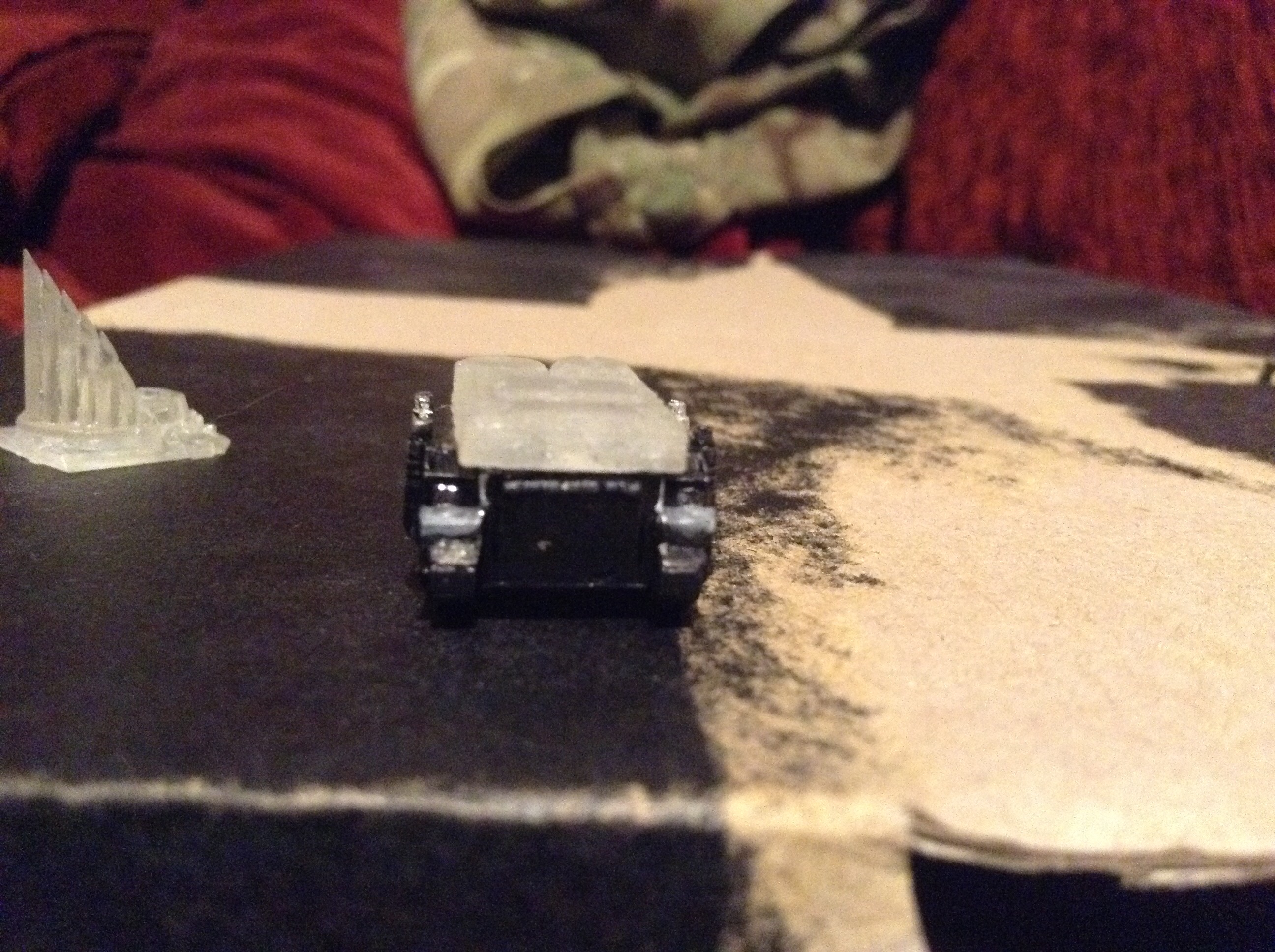 Here is an easy to use metric of how wide these need to be, no measurements required (I suck a measuring at any scale). The rear of the parts need to be no wider than the inside of this blacked area under the repressor bit in order to fit onto a GW epic Armageddon Rhino chassis I assume it's designed for.