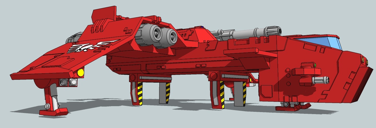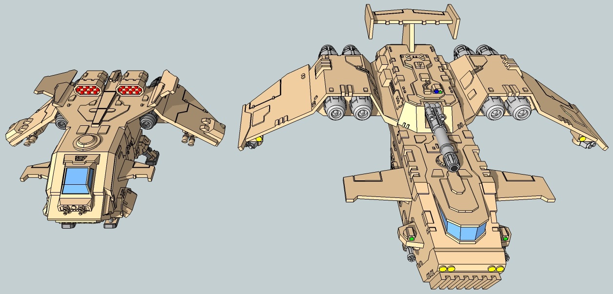 After several days' effort, I present to you, the Javelin-pattern ThunderSquak heavy dropship! It isn't ready for printing quite yet, but hopefully I'll have it up on Shapeways in day or two. There will also be a vehicle transporter variant coming in the near future.