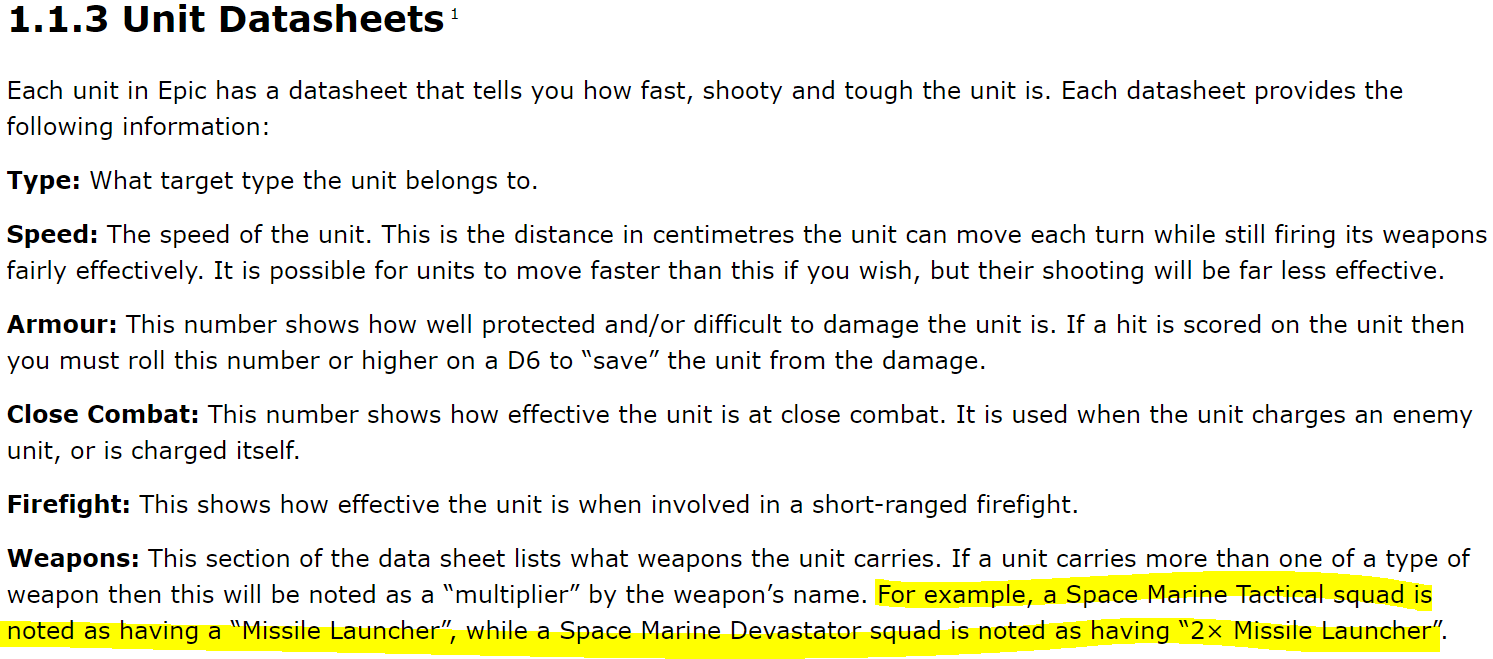Sorry if I was a bit unclear, but you answered my question. I was confused because the weapons are listed as plural on the datasheet. Thanks!