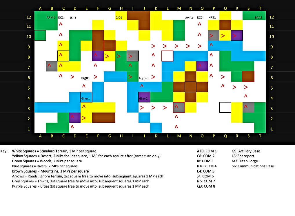 The Squat's Ghor1 army take control of a city before moving on to seize COM5! Markus' IG Brgtl1 takes COM3. IG army Brgcmd1 surges forward and is closing on the Spaceport (L8)... Meanwhile the Squats Ghor2 have secured the Titan forge and are closing in on another COM!