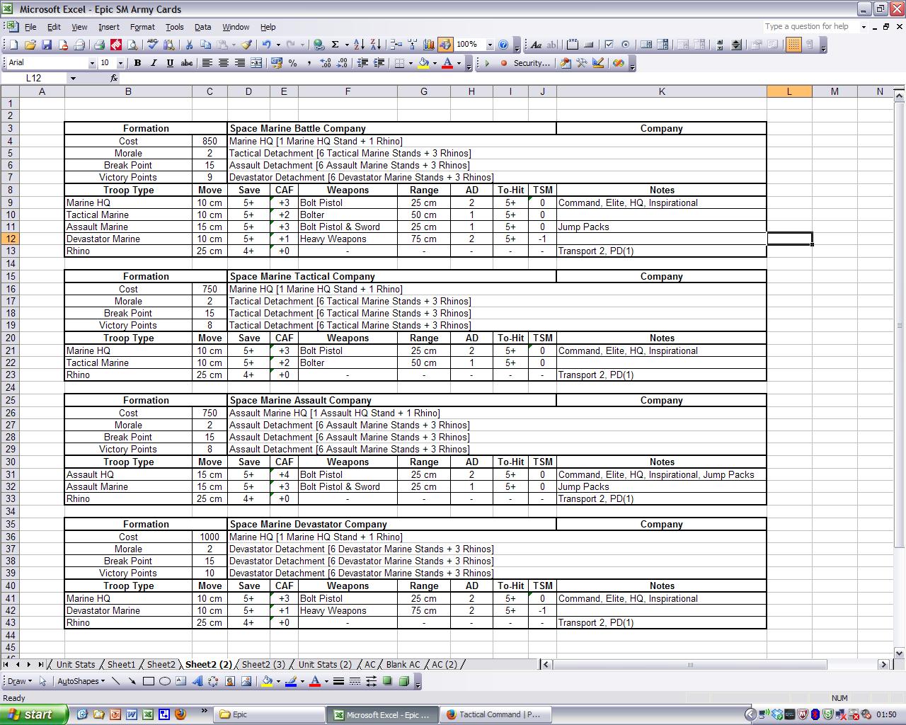 Yeah, I am doing things with the marine list, so I will produce these for the marines, haven't done them all yet, those are just a few examples. Will post up the Excel doc when I get done and you can use the template for the other armies.